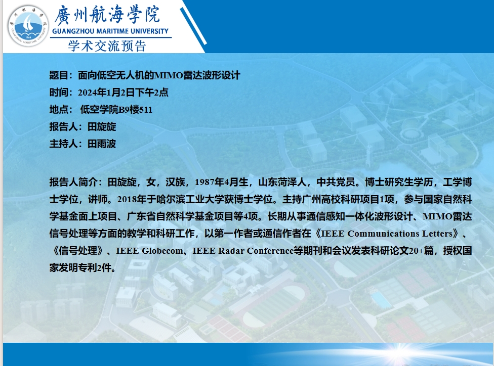 “低空翱翔”:田旋旋《面向低空无人机的MIMO雷达波形设计》