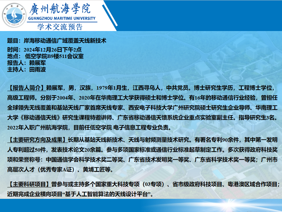 “低空翱翔”:赖展军 高级工程师《岸海移动通信广域覆盖天线新技术》