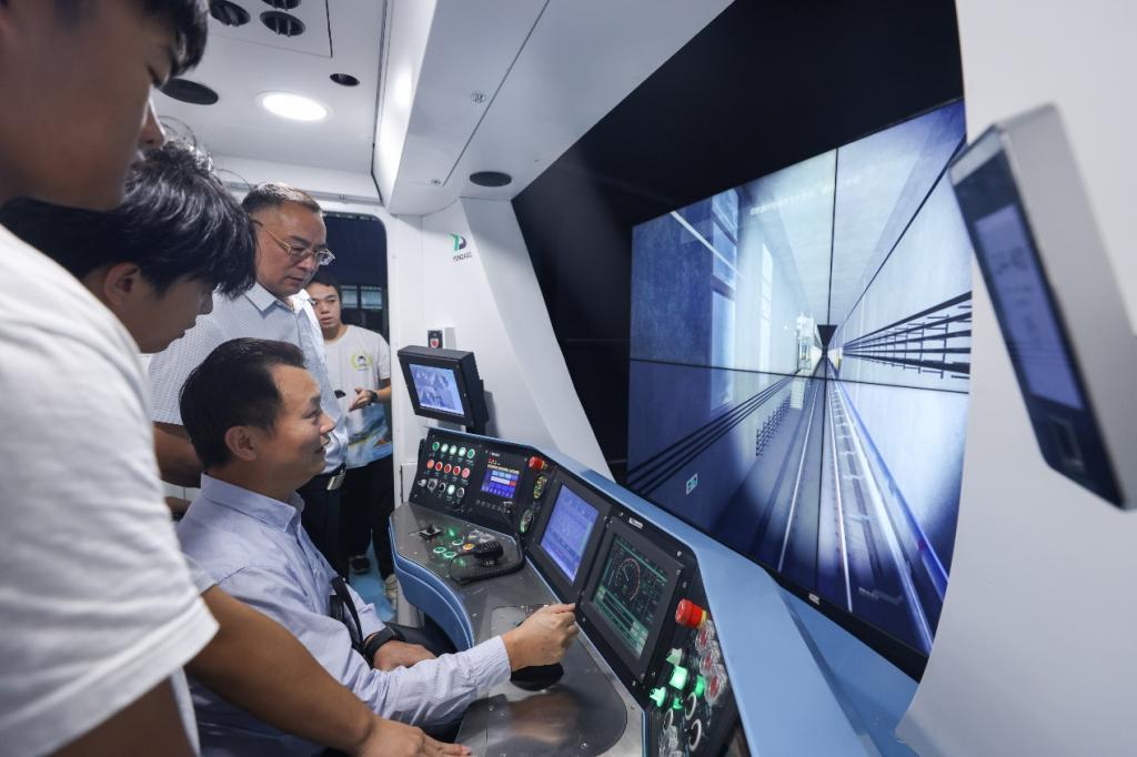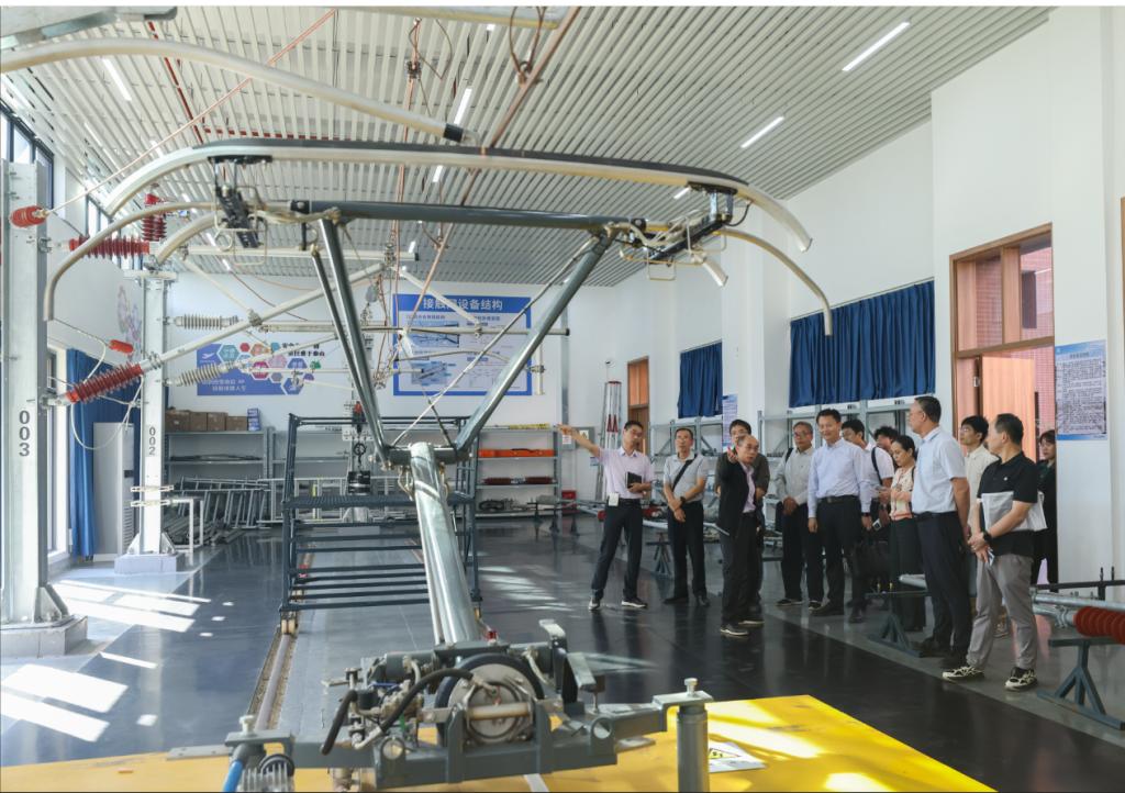 唐强荣一行首先参观了广铁职院轨道交通产教融合实训基地,该实训基地是集实践教学、科技攻关、技能培训、技术服务、创新创业、企业真实生产于一体的实训基地。详细了解了信号调度下机车车辆、铁道供电以及铁道工程专业联动运作的一体化系统以及人才培养模式。在参观过程中,成员们不仅切身体验地铁、高铁模拟运行而且就校企合作模式、人才培养、学生业务培训、技术交流等方面进行了深入探讨。