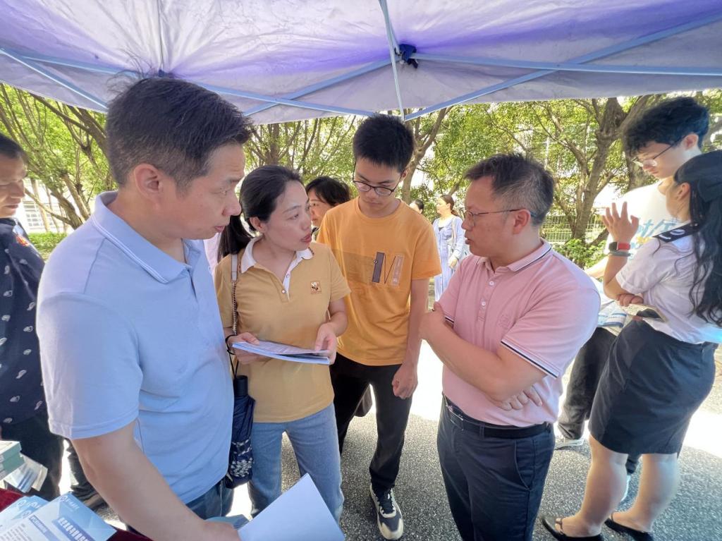 相约盛夏。上午9点,家长和考生络绎不绝,对学院专业十分感兴趣。“我理工类广东全省排位8万+,能不能报考电气工程及其自动化专业?”“我家小孩计划报考通信工程专业,想提前了解下大学学习的课程及未来就业方向”“学校住宿环境怎么样”......对于考生及家长的热情提问,m88党委书记温兆麟、专业老师、辅导员老师在现场热情耐心回复。