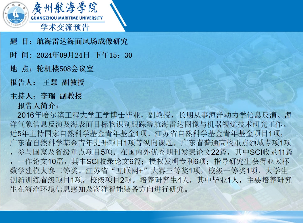王慧 学术交流预告:航海雷达海面风场成像研究