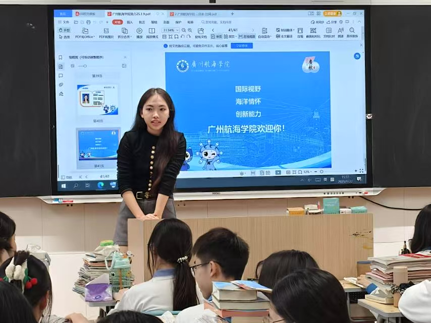 在中山市华侨中学,沈偲怡同学参与其中,她自豪地说:“能为母校和广航搭建沟通桥梁,收获特别大。”在体育馆,精心布置的宣讲摊位前,宣传册发放、宣传片播放,勾勒出广航的初步轮廓。礼堂内,寒宣学子们详细介绍m88特色专业,阐述专业优势,展现雄厚师资与活力校园文化。同学们分享广航学习生活,讲述实践平台带来的成长,耐心解答报考疑问,助力学弟学妹规划未来。除此之外, 广航小海螺、小海燕们结合自身经历,向学弟学妹们传授了备考锦囊和各科学习体会。