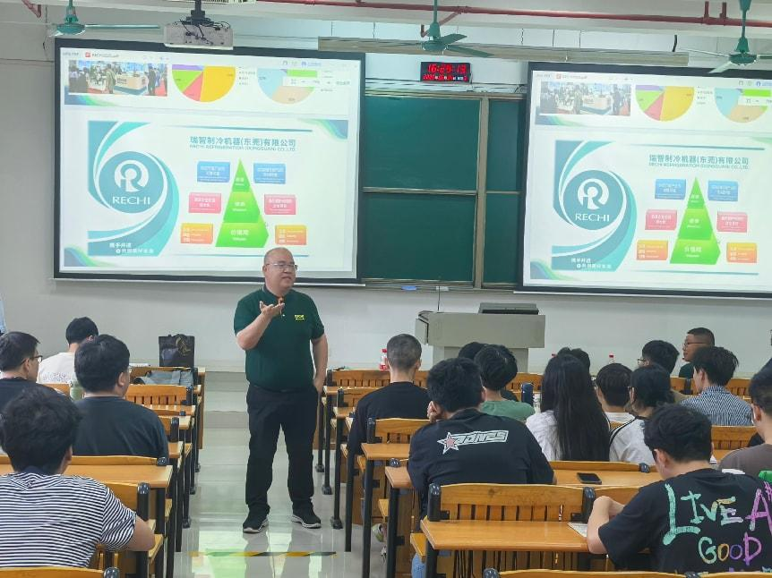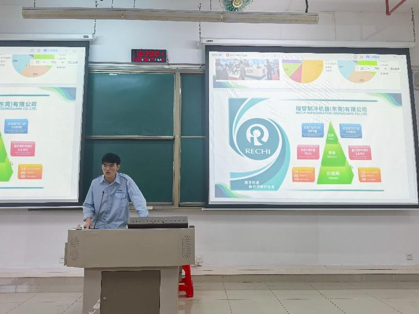 林建璋详细阐述了瑞公司在制冷领域的核心竞争力与行业地位,并重点介绍了毕业生关心的薪酬福利、工作环境及企业文化,强调公司为员工提供良好的发展平台。