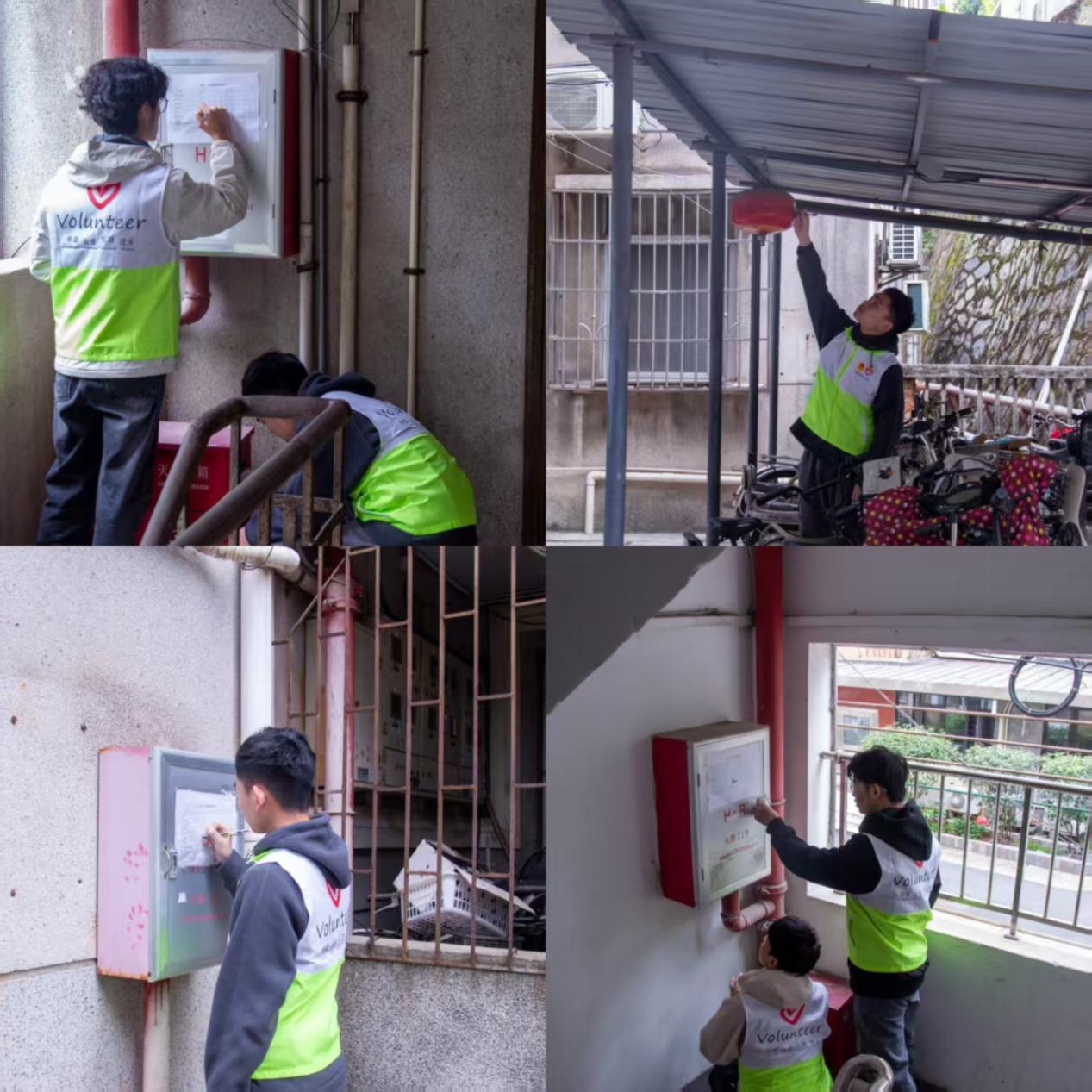 活动中,学院充分发挥专业优势,由电气工程及其自动化专业学生组成消防检查小分队,逐层检查居民楼灭火器有效期、消防通道畅通情况,对问题登记在册,并及时反馈给社区居委。“爬楼虽然辛苦,但协助社区做好消防安全,认为很值得!2022级党员王同学说道。