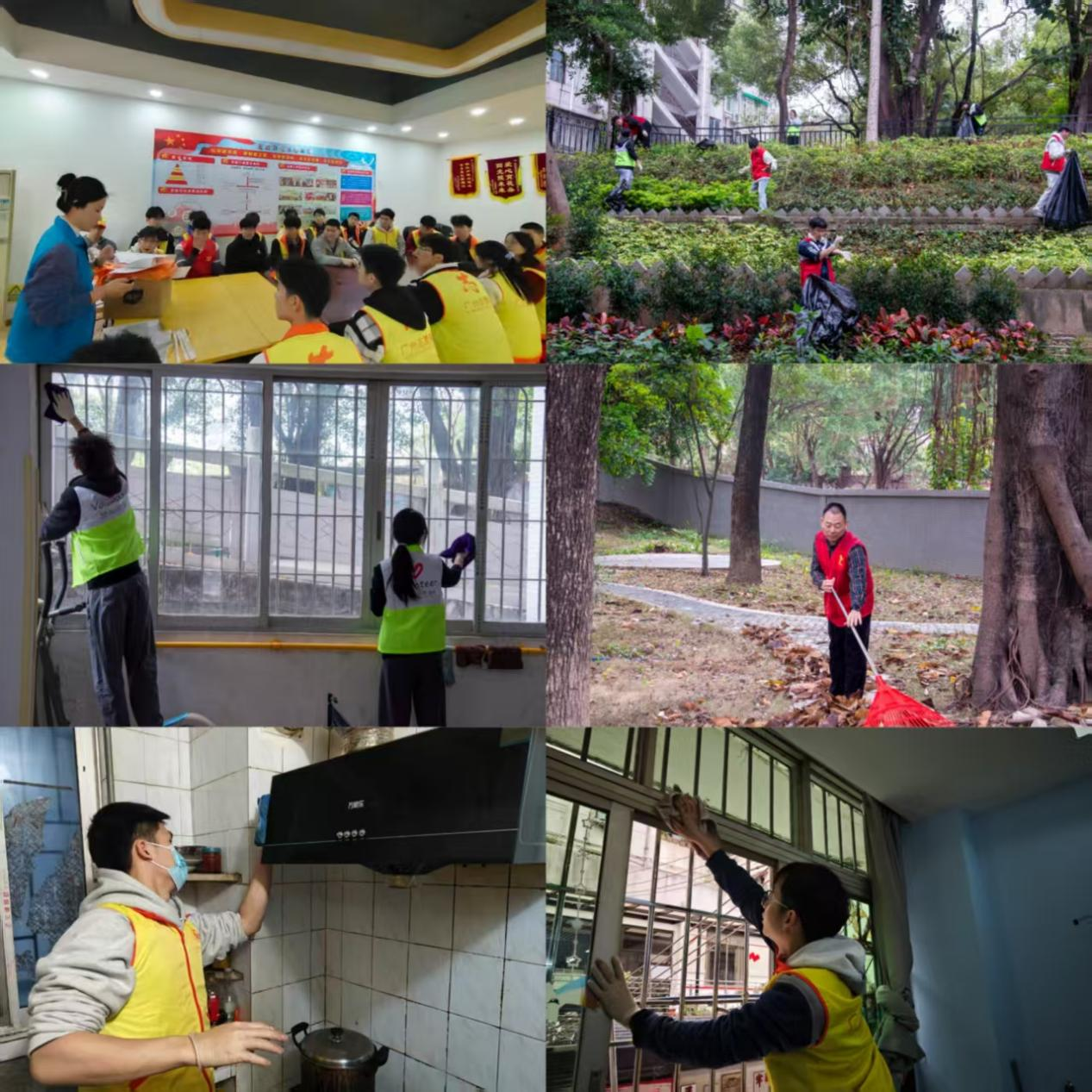 2时,在社区工作人员的安排下,学生志愿者手持扫帚、抹布、垃圾袋等工具,分组深入社区“老人之家”及公共区域开展卫生清洁行动。他们仔细捡拾社区公园树叶和垃圾、清理绿化带内的纸屑烟头清理“老人之家”。尽管天气微寒,但志愿者们积极参与、热情高涨。经过两小时的努力,社区面貌焕然一新“第一次参与进社区志愿活动,我觉得特别有意义!2024级同学感慨道。